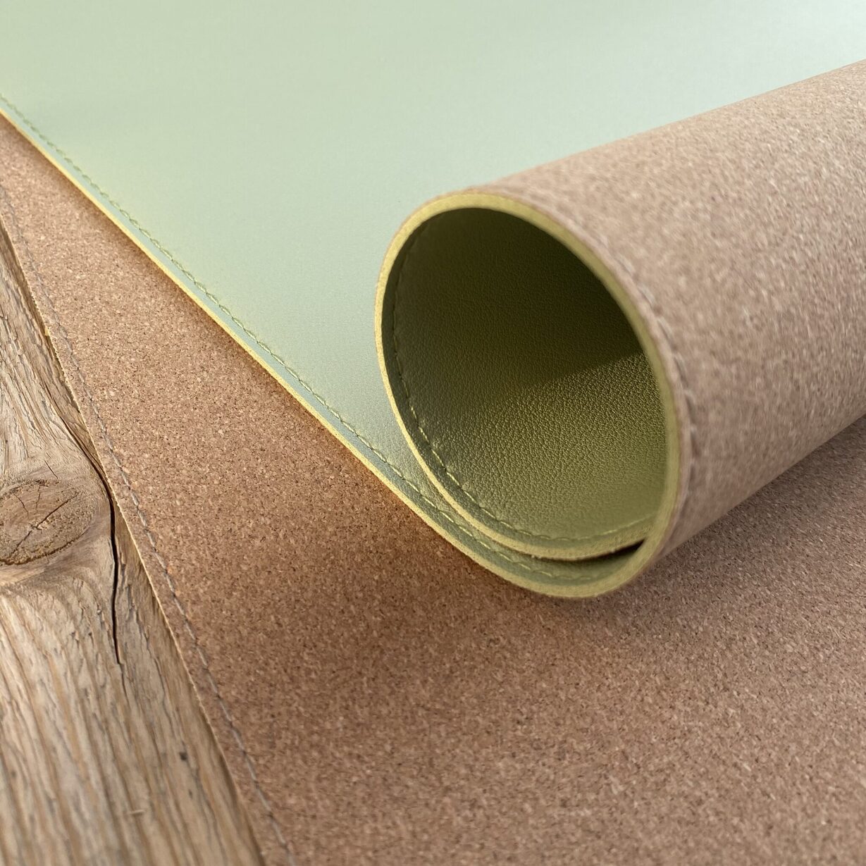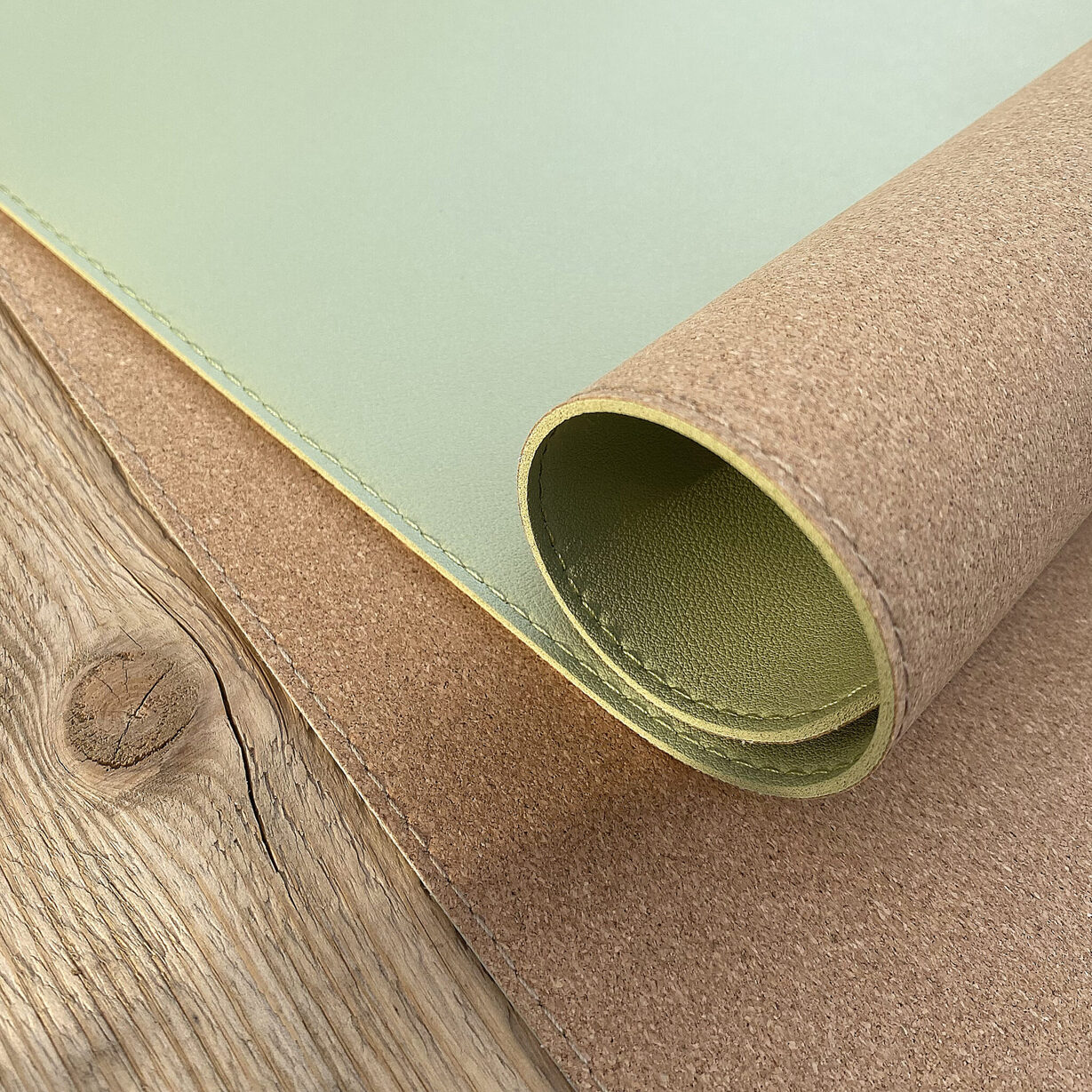 Antislip onderzijde: De achterzijde van de mat is vervaardigd uit natuurlijk kurk, dat zorgt voor een antislipbasis. Hierdoor blijft de mat stevig op zijn plek liggen, ongeacht hoeveel je beweegt, zonder dat je je bureau beschadigt.